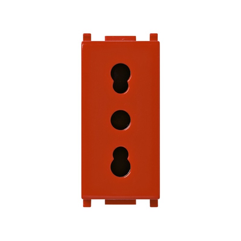 Vimar Plana rote Standardsteckdose 14203.R. Die Standardsteckdose ermöglicht das Einstecken von sowohl 10A-Steckern (kleine Stecker) als auch 16A-Steckern (große Stecker).