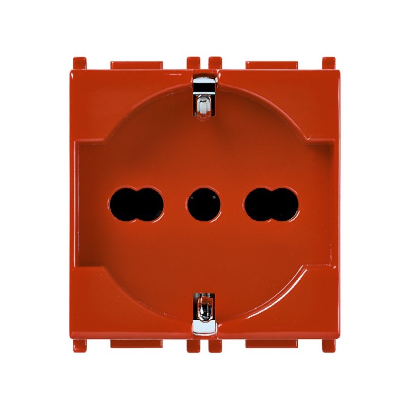 Steckdose SICURY 2P+E 16 A 250 V~ universal, für Euro-Stecker 2P 2,5 A, Stecker 2P und 2P+E 10 A und 16 A italienische Norm, Stecker 2P+E 16 A deutsche Norm, rot - 2 Module. Stellt keine Masseverbindung mit französischem Standardstecker her