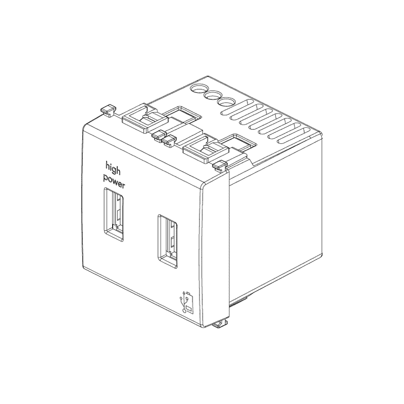 Vimar Plana USB-Steckdose 5V 2x1A. 3 USB-Ausgängä Typ A, 120-230 V~ 50/60 Hz Stromversorgung, 2 Module. Kompatibel mit den Halterungen VIW 14602/13/14/17/20.