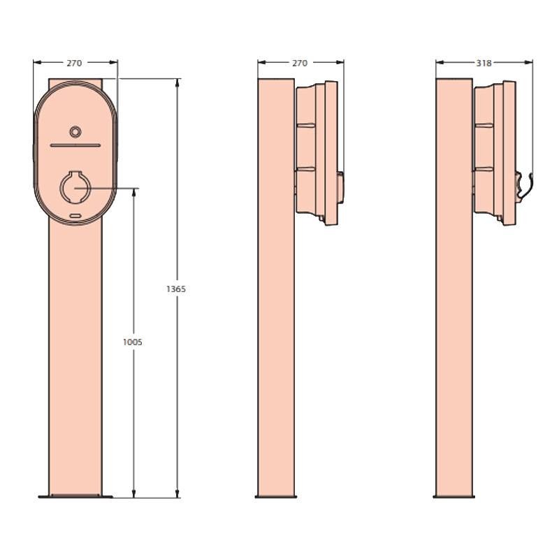 Gefertigt aus widerstandsfähigem Metall, ist dieser Support so konzipiert, dass er sowohl den inneren als auch äußeren Umweltbedingungen standhält, dank seiner Robustheit. Seine solide Struktur gewährleistet die Stabilität und Sicherheit der Ladestation und verhindert unerwünschte Bewegungen während des Gebrauchs.