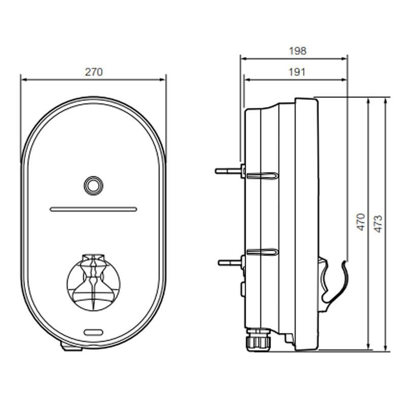 Die Wallbox Green Up Home kann an der Wand oder am Boden (mit dem Zubehörständer 057057) installiert werden, was sie für verschiedene Raumlösungen geeignet macht. Dank ihres Polycarbonat-Gehäuses ist sie wetterbeständig und perfekt für die Installation sowohl in Innen- als auch in Außenbereichen, mit einem Schutzgrad von IP44.