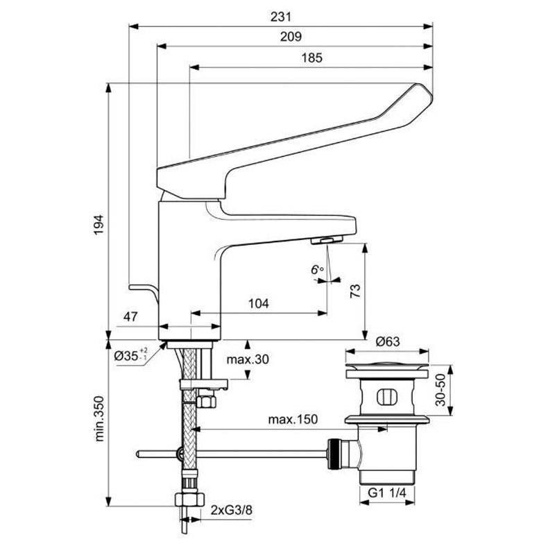 Ideal Standard Ceraplan 1 1/4 Chrom Waschtischarmatur mit Ablaufgarnitur