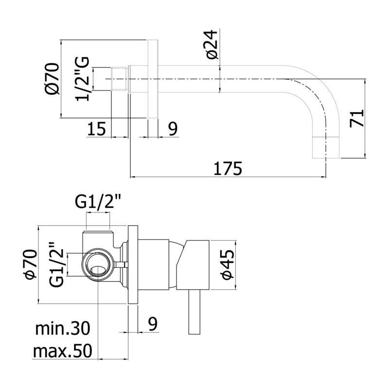 Dank des 175 mm langen Auslaufs mit Luftsprudler M22x1 garantiert die Armatur einen gleichmäßigen Wasserfluss und einen geringen Verbrauch. Die Unterputz-Installation optimiert den Platz und lässt das Waschbecken frei von Unordnung.