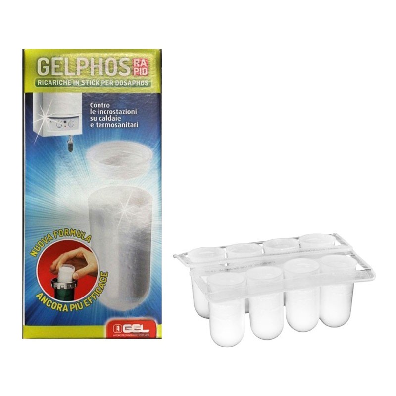 Packung mit 8 Nachfüllpackungen Polyphosphat GEL GELPHOS RAPID, Antifouling-Produkt in gebrauchsfertigen Sticks. Kompatibel mit den Serien DOSAPHOS 200, 250 und DIMA. Packung mit 8 Stäbchen.
