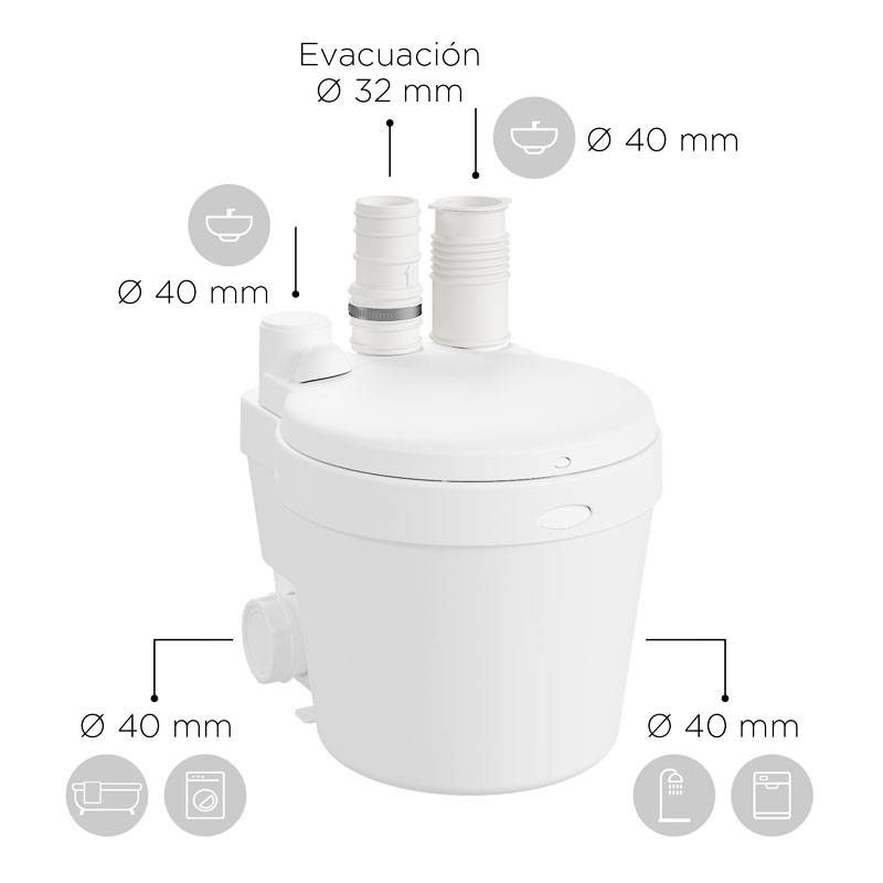 Watersan WS11 Schmutzwasserhebeanlage oder -pumpe (SFA-Gruppe) ermöglicht Ihnen die einfache Installation von Waschbecken, Bidet, Dusche, Waschmaschine und Geschirrspüler ohne invasive Arbeiten. Denn nicht immer ist es möglich, einen Anschluss an das Abwassernetz herzustellen. Zerkleinerer bieten eine schnelle und effiziente Lösung, um diese Einschränkungen zu überwinden.