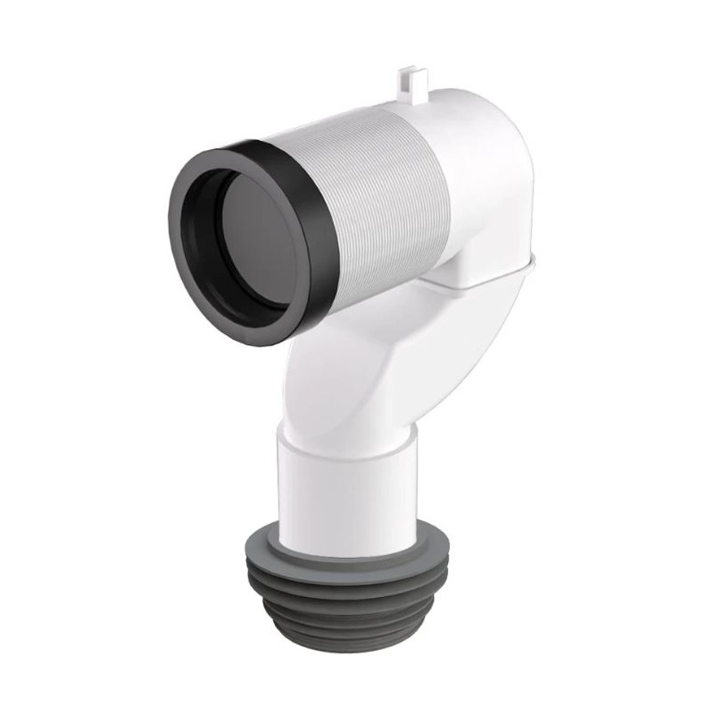Bonomini Civitas P-Bogen für den bodenbündigen Anschluss von WCs an die Wand. Dichtung aus vulkanisiertem Gummi.