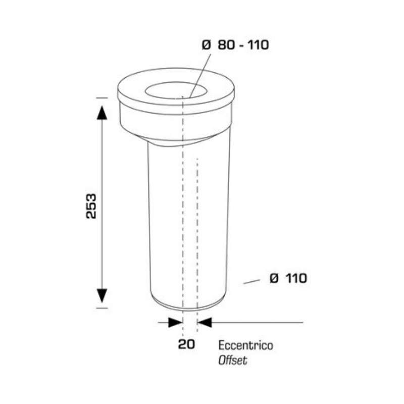 Bonomini Verlängerungsrohr exzentrisch für WC-Schüsseln mit folgenden Eigenschaften: