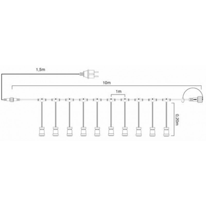 Die Girlande ist mit einem gleichmäßigen Abstand von 10 cm zwischen den LEDs konzipiert, um eine harmonische Lichtverteilung zu gewährleisten. Die Leuchte hat eine Länge von 10 Metern und ein 1,5 Meter langes Stromkabel für den einfachen Anschluss an das Stromnetz.