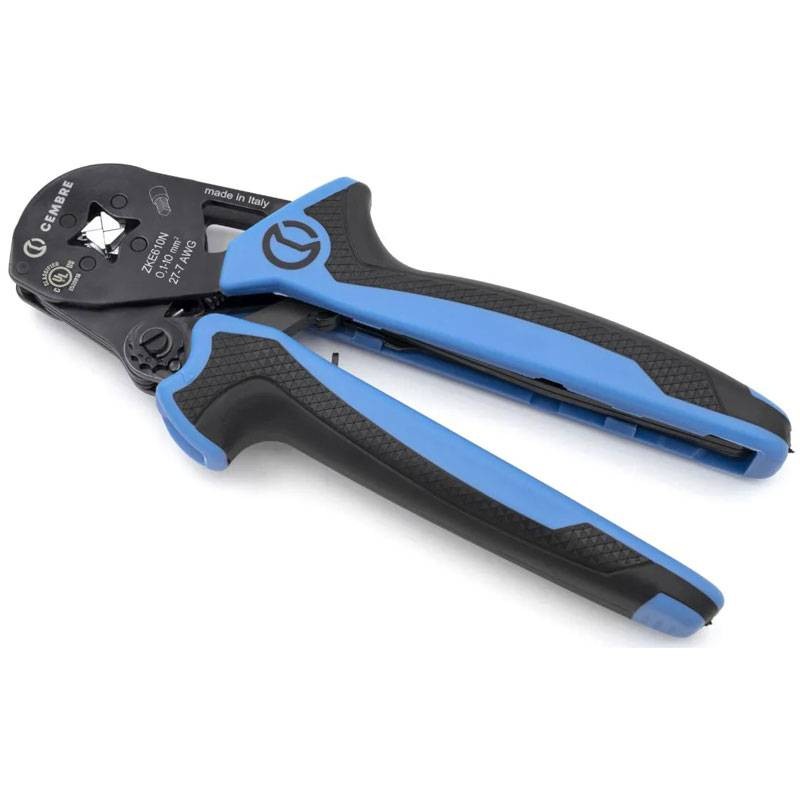 Die mechanische Crimpzange ZKE610N von Cembre wurde entwickelt, um ein optimales und präzises Crimpen von Kupfer- oder Aluminium-Kontaktrohren von 0,1 bis 10 mm² zu gewährleisten, ideal für Anwendungen in der Elektroinstallation. Der Einpresskopf gewährleistet eine gleichmäßige, rechtwinklige Verpressung, während das synchronisierte Verpressungssystem die Gratbildung an den Kanten der Kontakte minimiert.