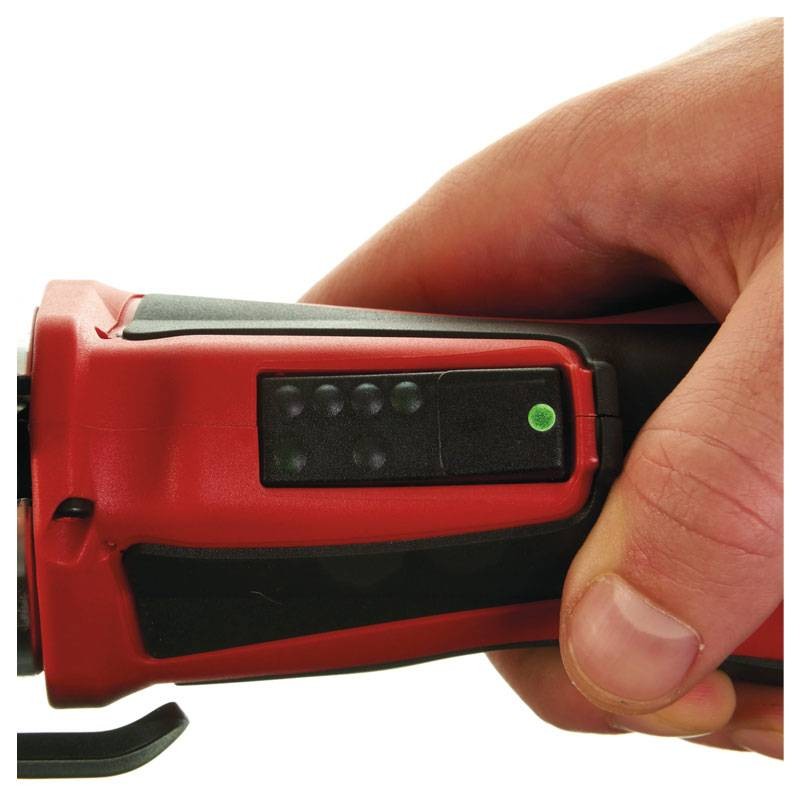 - Das Gerät prüft die Batterieladung, bevor es mit dem Verpressen beginnt, und beginnt bei unzureichender Ladung nicht mit dem Verpressen, um die Arbeit nicht unvollendet zu lassen