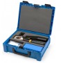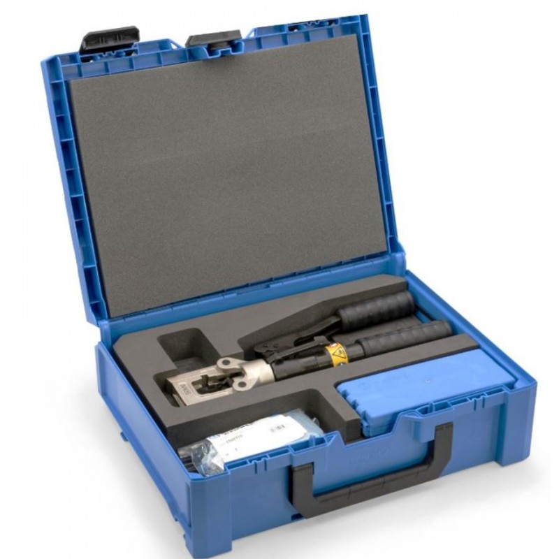 Der Cembre-Bausatz enthält das hydraulische Werkzeug HT51 (50 kN) mit 8 Matrizenpaaren (25 bis 185 mm2) und einen praktischen und robusten Transportkoffer.