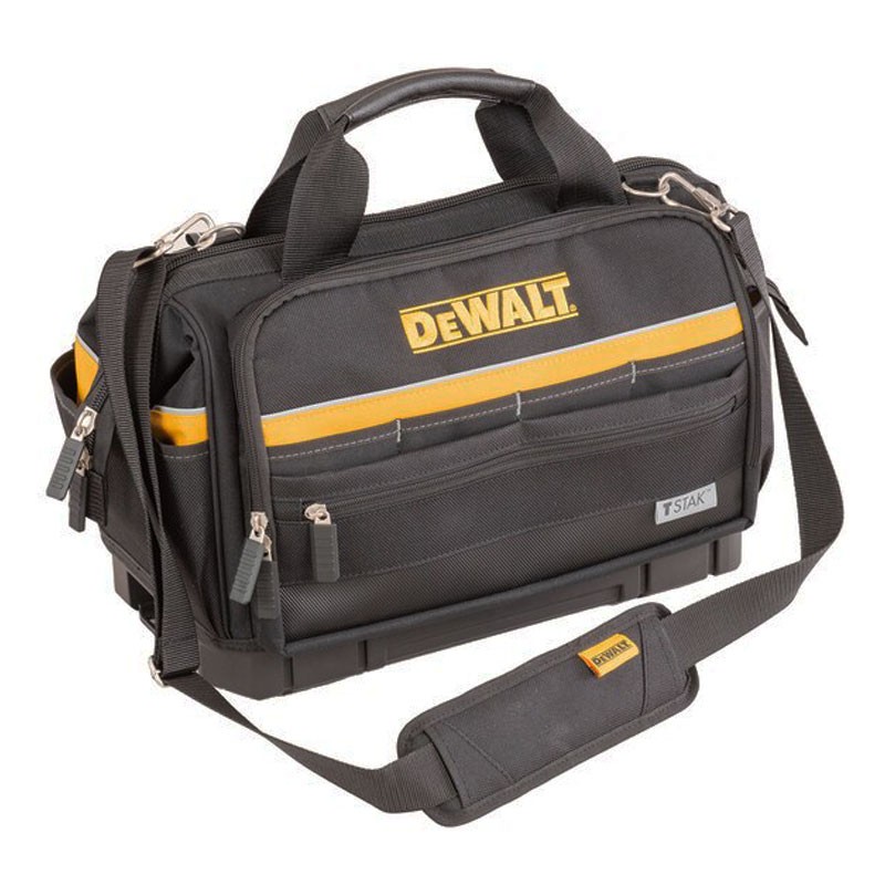 DeWALT Wasserdichte Werkzeugtasche aus Polypropylen. Materiall aus Nylon 600x1200 Den, Innen- und Außentaschen, herausnehmbare Trennwände und reichlich Platz für Elektrowerkzeuge und Batterien. Gepolsterter Schultergurt. Anordnung für Befestigung an TSTAK-Modulen. Abmessungen 45x25x30cm.