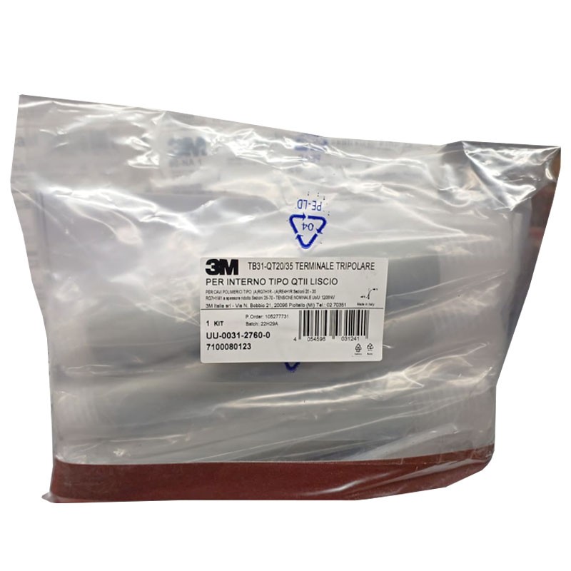 Kompletter Bausatz bestehend aus 3 unteilbaren Klemmen und Zubehör für den korrekten Betrieb der Mittelspannung, und für die Ausführung von drei unipolaren Abschlüssen.