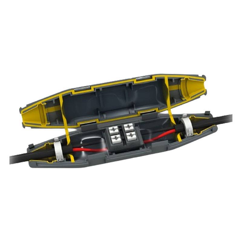 Kit contents: Joint, Two-pole and three-pole connector, Cable clamp system.