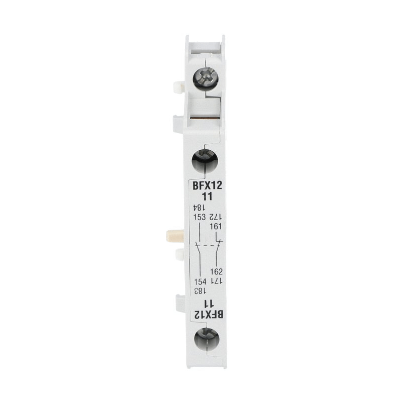 Lovato auxiliary contact for side mounting. Screw terminals, for BF series contactors, for BF00, BF09-BF150. Contact type. 1NO+1NC.