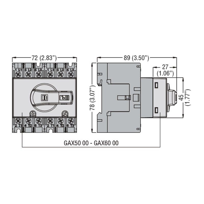 Lovato mechanical interlock for 1-0-2 mains switching for GA016A...GA040A, GA063SA, GA040D E GAX67B, GA125A.
