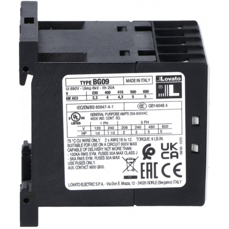 Lovato three-pole mini contactor 9A coil ac-24V 1NA 11BG0910A024