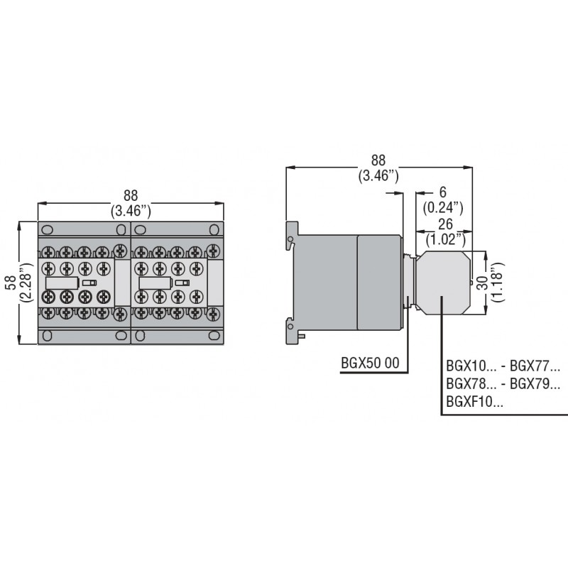 Lovato mechanical interlock for BG... series mini contactors, for all BG...A and BG...D. Tightening torque for terminals and coil terminals min IBIN 9, max IBIN 9.