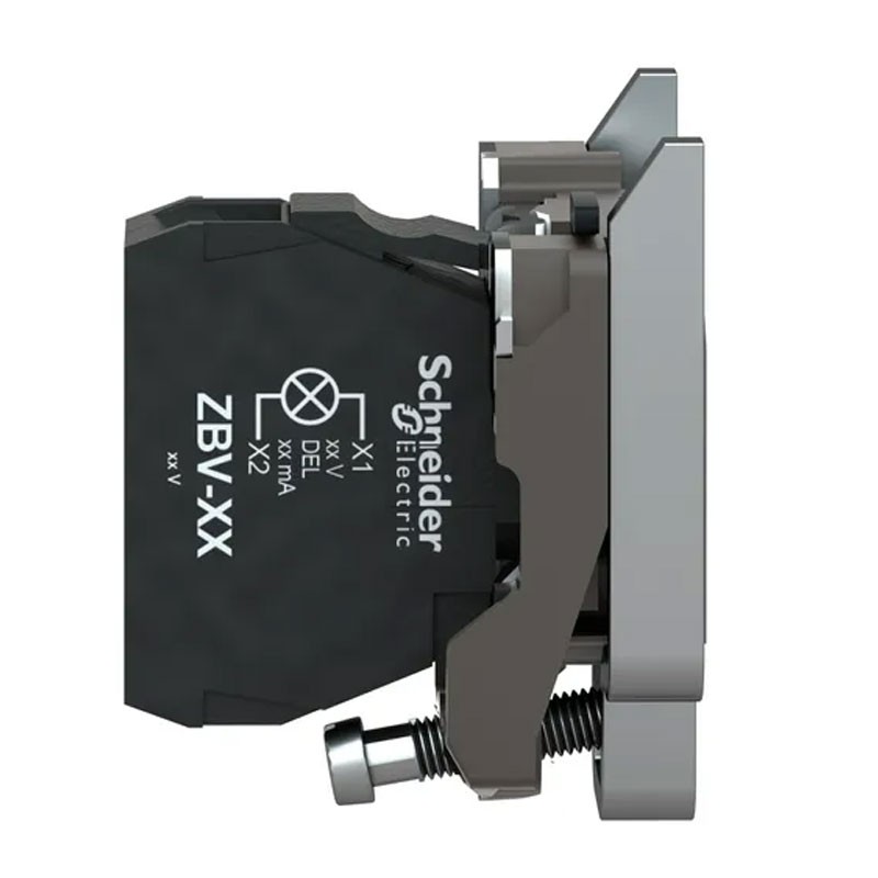 It is powered at 250 VAC/DC and uses screw terminals. It has a metal body and is compatible with Harmony XB4 indicator lamps. This light element allows for quick and easy replacement and configuration of warning units. It can be easily installed and replaced on compatible selector units or push-button lights via the clip assembly and connected with simple screw connections. Allows signaling units to be visually distinguished through illumination by BA9s bulb. Protects operators from accidental contact with live circuits through its IP20 rating.
