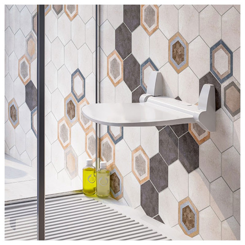 The main feature of the seat is that it can be folded against the wall quickly and easily, leaving the shower space free without having to move it even at times when it is not in use.