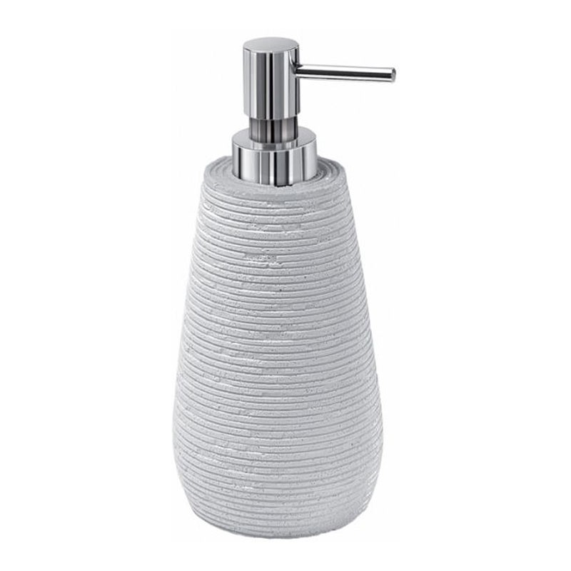 - 1 countertop standing soap dispenser white, with plastic dispenser, made of resin with stone-like effect. Dimensions 8.6x9.4x20.7cm.