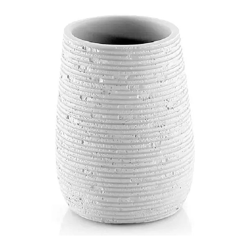 - 1 countertop toothbrush holder white, made of resin, with stone-like effect. Dimensions: diameter 8.7x11.1cm.