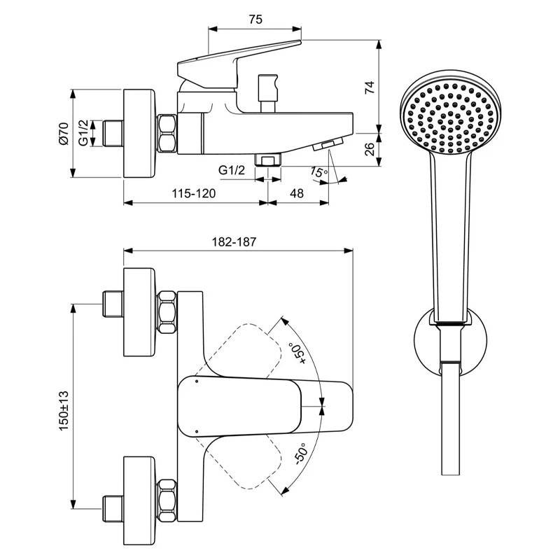 Ideal Standard external bathtub and shower tap with hand shower BD258AA