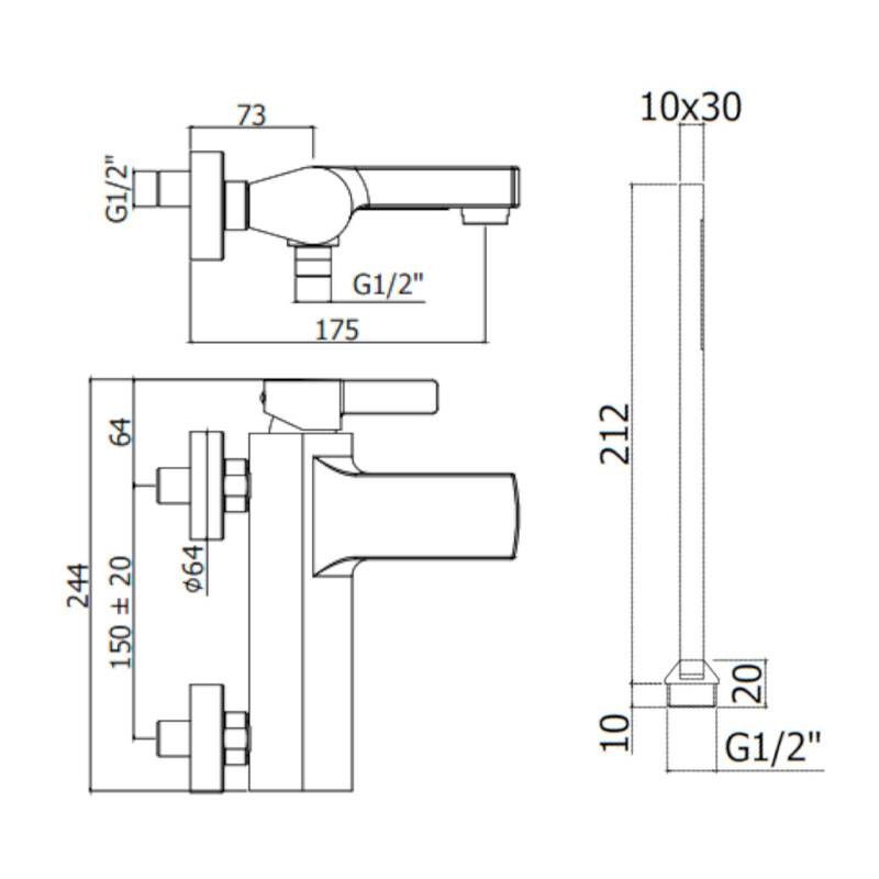 Teorema Pillar wall-mounted bathtub tap with hand shower 8G18111-001