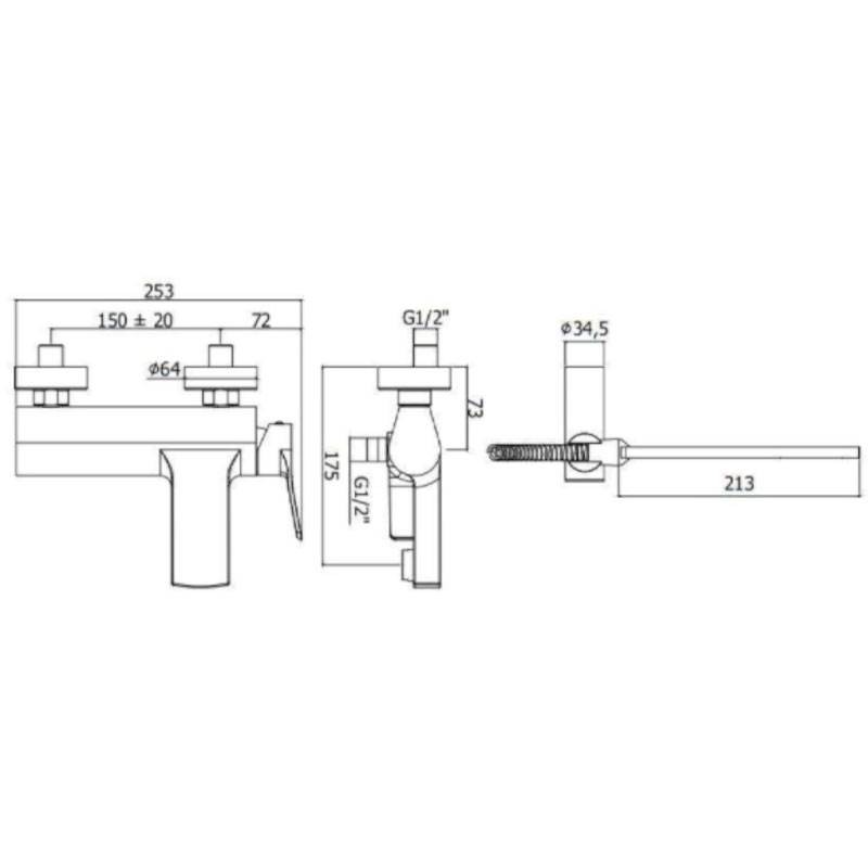 Teorema Pillar wall-mounted bathtub tap with hand shower 8G18111-001