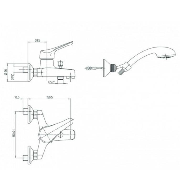 Teorema Pillar wall-mounted bathtub tap with hand shower 8G18111-001