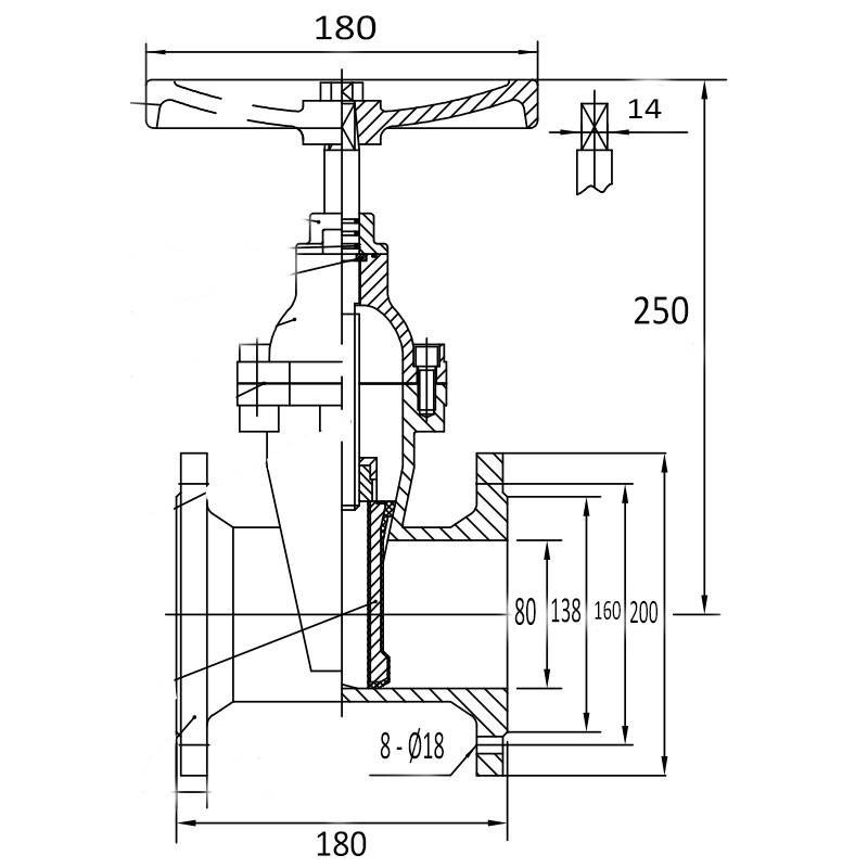 BF Control flat body gate valve PN16 80 mm 3 inches cast iron BS160080