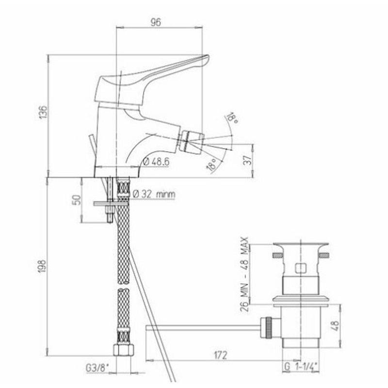 Paini Pilot single-lever bidet tap with drain with the following features: