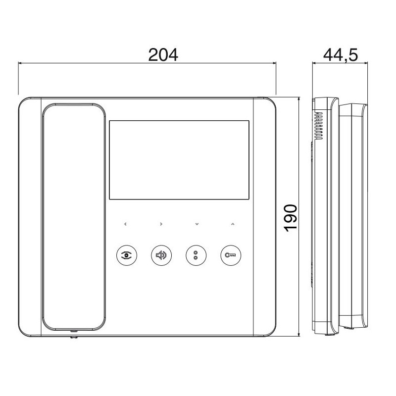 The 5-inch LCD display, provides clear and vivid images, with color, brightness and contrast adjustments directly from OSD menu. Master/Slave function allows video dribble between multiple monitors in case of simultaneous calls, improving communication management in complex installations.