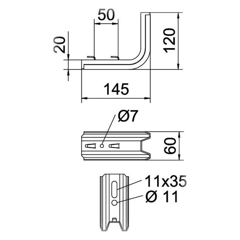 Obo TPSAG Profile Wall Bracket for GRM FS L 145 mm 6366015