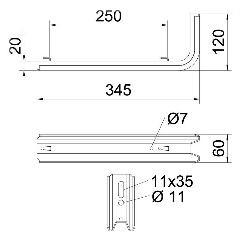 Obo TPSAG Profile Wall Bracket for GRM FS L 345 mm 6366066
