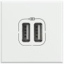 Bticino Axolute white USB double socket charger. The charger is powered and is used to charge mobile phones, smartphones, tablets and all devices that can be charged via USB.