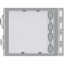 Bticino Sfera module with 4 additional buttons arranged on single column. Connection by means of special multi-cable provided. Backlighting of name tags controlled by the sound module or by the combined audio video module.