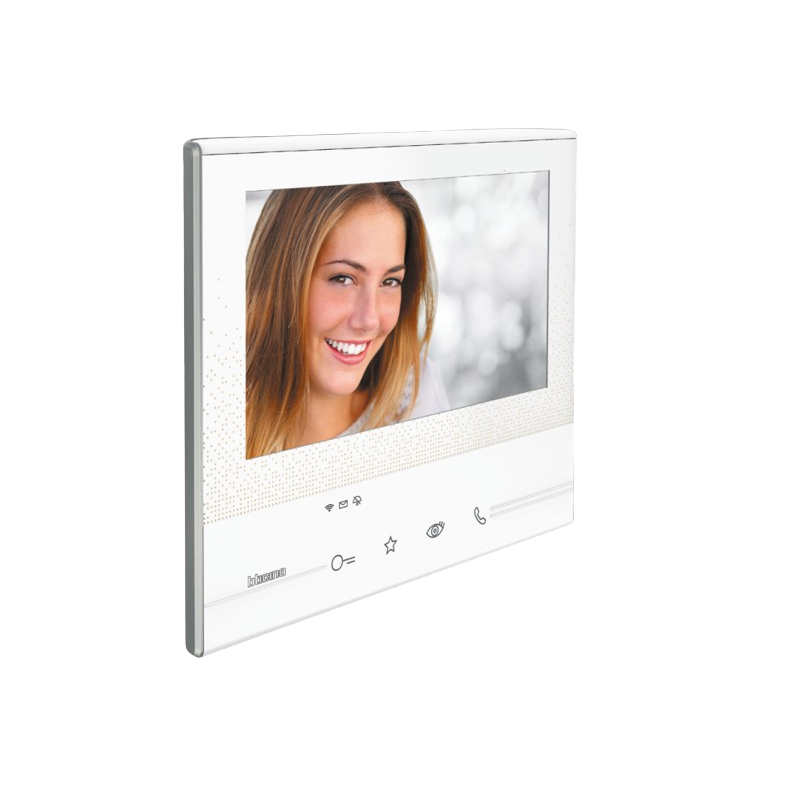 VideointercomBticino Classe 300X13E 2 wires Wi-Fi hands-free with teleloop, 7" LCD Touch screen display and videointercom answering machine with light finish.