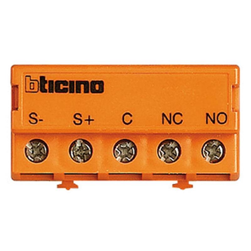 1 relay module for electromechanical locks not managed by BUS (code 346250): Relay module for gate opening to be combined with prearranged external pushbuttons. Allows opening of locks NOT operated by BUS via the door station. Contact type: NO-NC, system type: 2 wires.