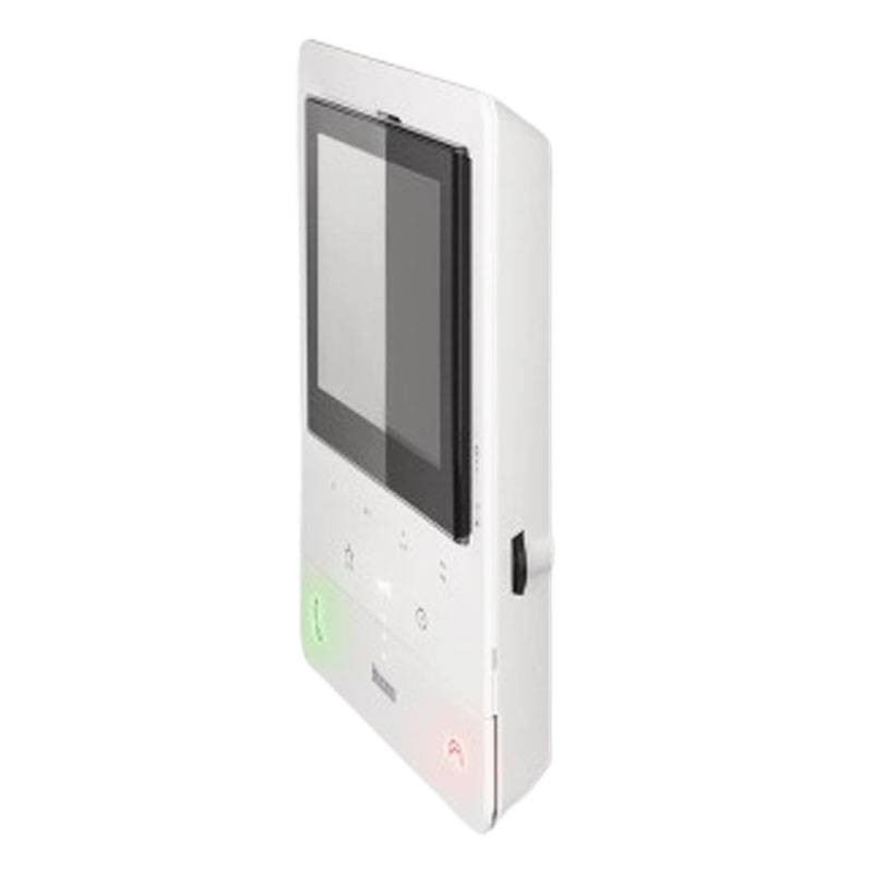 - The device has 2 physical buttons for controlling the main video door phone functions-answering and terminating the call-and 3 touch buttons that allow activation of the electric lock, activation of the door station/cycling, and customization of a quick action that the user uses most frequently-e.g., staircase light control, intercom, additional electric lock activation, and general activations