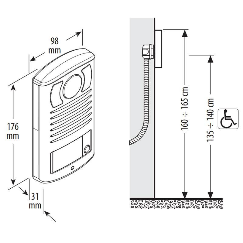 - 1 LINEA 2000 video handset, 2-wire technology, with color camera and 1 call button (code 343031)
