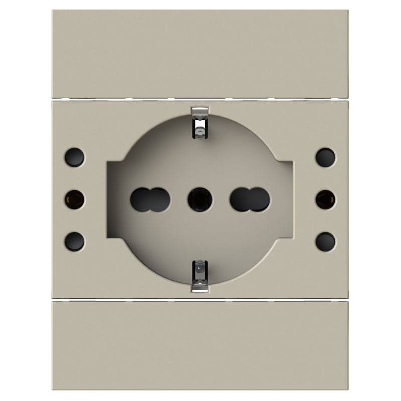4Box P503 receptacle compatible with the Bticino LivingNow Sabbia series consisting of 1 schuko, 2 10A outlets and 1 10/16 A outlet.
