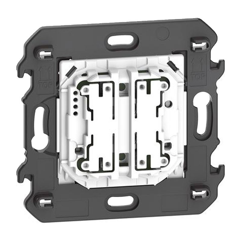 - Surface installation with repositionable stickers (supplied) or on recessed boxes, built-in LED for low battery signaling