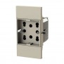 The Bticino Living Now 4Box Side two-pin Schuko Receptacle is the innovative solution that allows you to combine functionality and design in just two modules. Thanks to its Side system, you can choose between one Schuko socket (2P+E 16A 250Vac) or two two-pin sockets (2x2P+E 10/16A 250Vac) without the need for adapters. Not only do you optimize space, you also eliminate the need for additional adapters, making your installation even cleaner and neater.