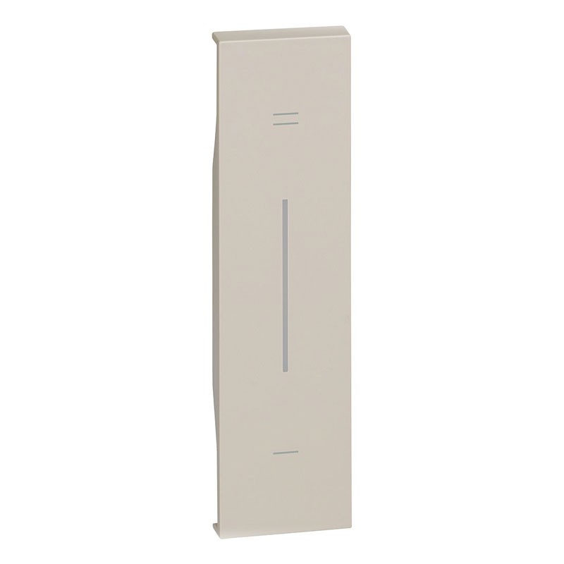 Bticino Living Now cover with +/- illuminable screen printing, compatible with dimmers and actuators. Elegant design, sand finish, with the following features: