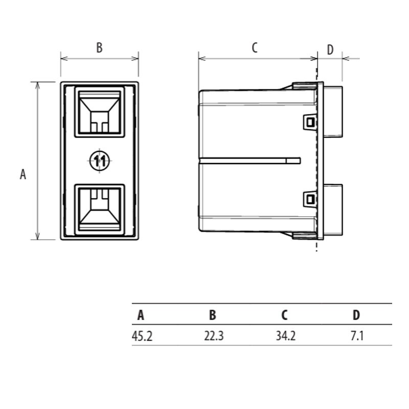 - Terminal capacity: 2 x 1.5 mm2 max.