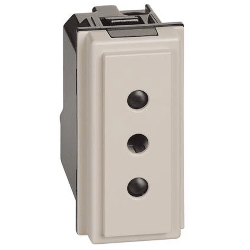 Socket Bticino Living Now 2P+T 10A 250V color sand, 1 module, centre distance 19 mm - alveoli shielded ø 4 mm. The power outlet allows you to insert inside it just plugs 10A (small plugs).