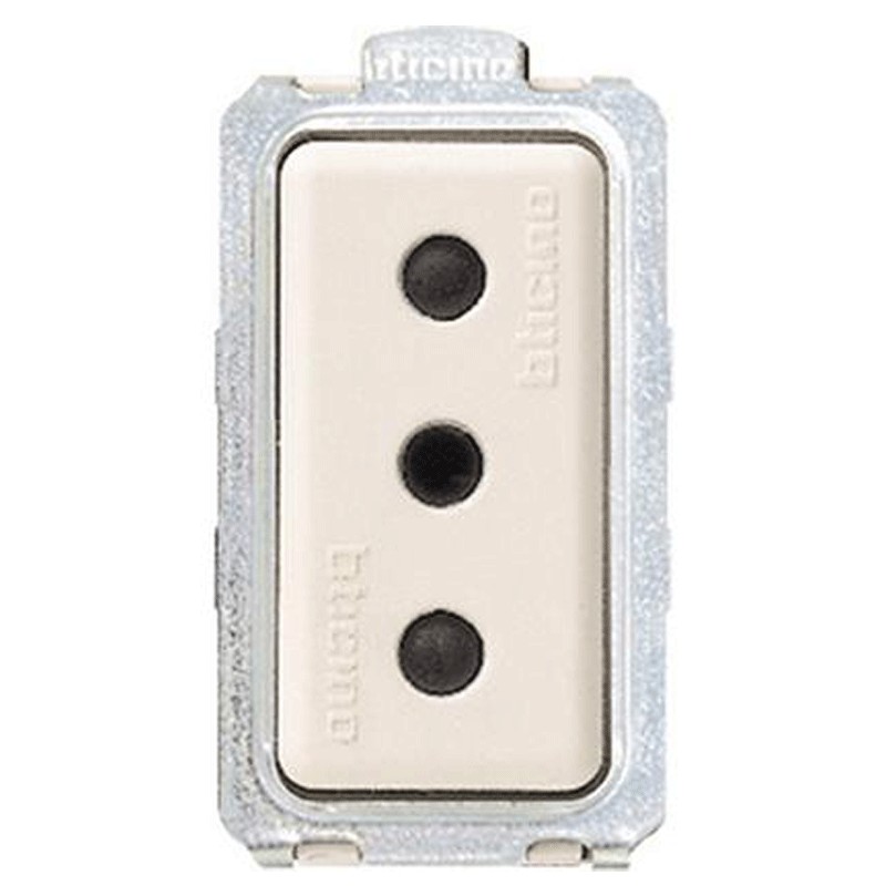 Italian standard socket Bticino magic 2P+E 10 A 250 V, 1 module. Module to be applied on 5367R,503R,504S,505R,506LS supports.