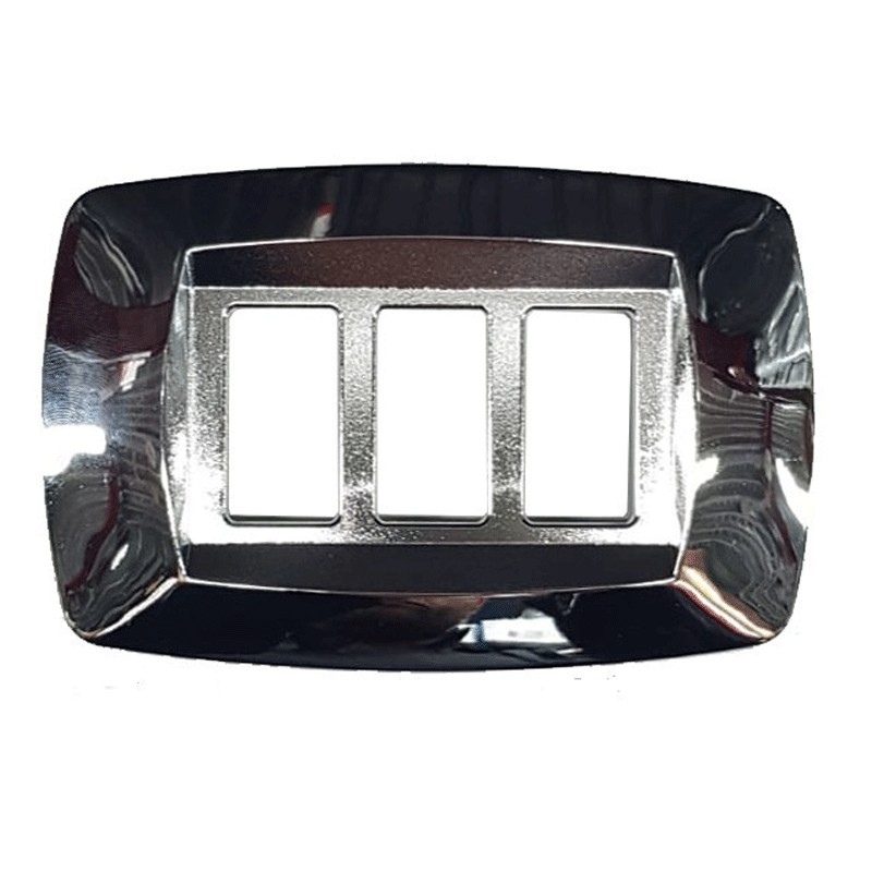Master Modi' plate, compatible with the Bticino Magic series, 3 modules, polished silver colour. Plate to be applied on support 00361