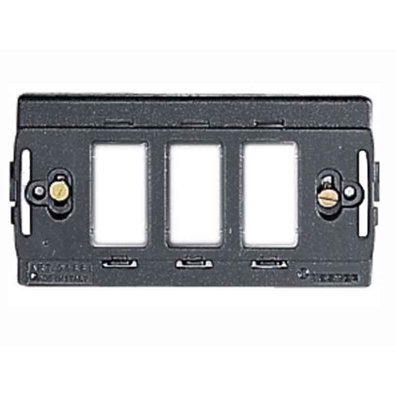 Master frame, 3 modules, belonging to the series '16000', in polycarbonate with screws. This frame is suitable for rectangular recessed boxes, and is also compatible with the switches of the series Bticino Magic.